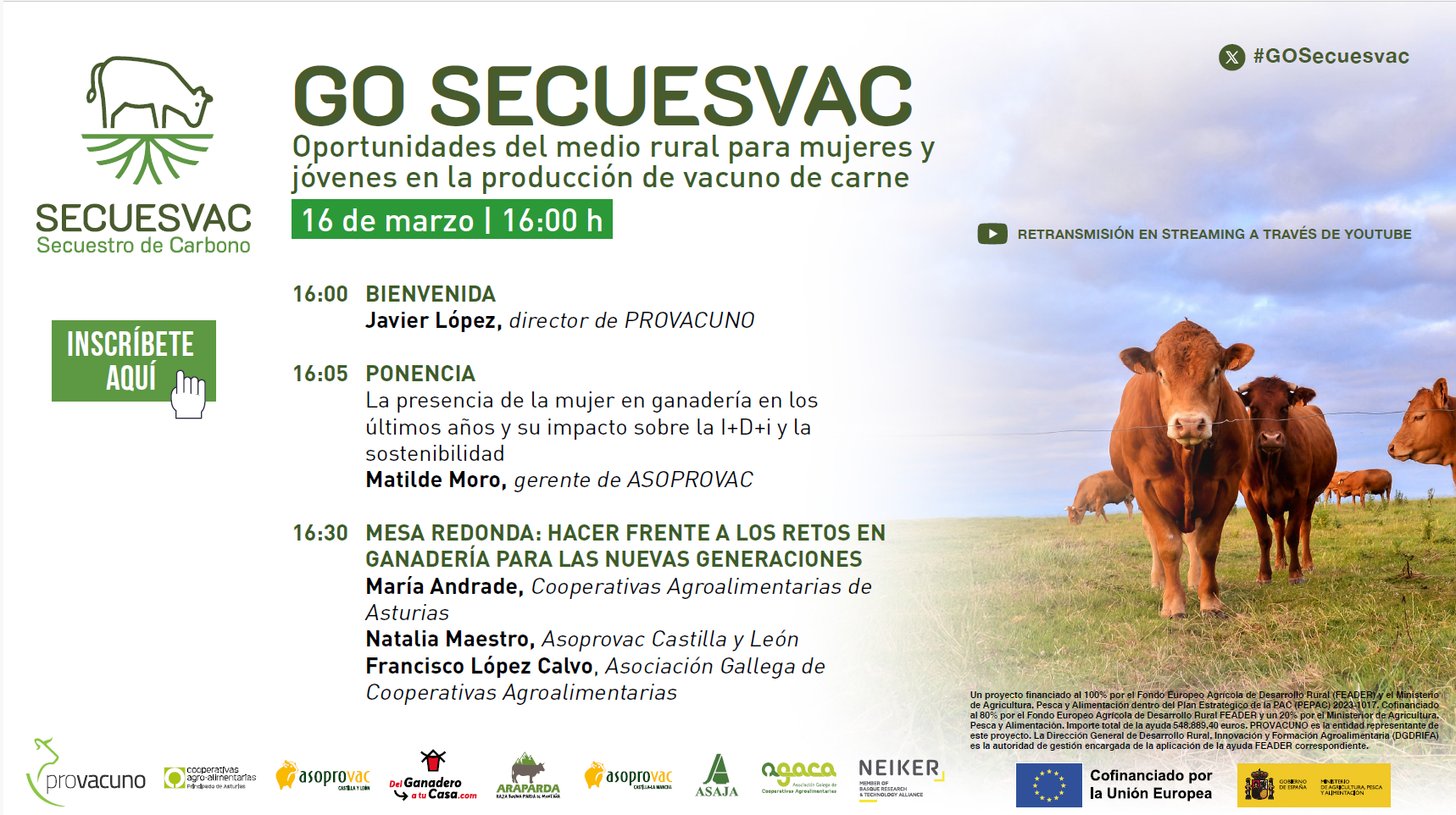 El webinar se enmarca en las acciones del proyecto SECUESVAC orientadas a fomentar la competitividad, la innovación y la sostenibilidad en las explotaciones de vacuno de carne.
